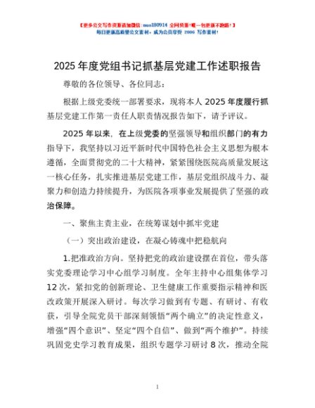 / 2025年度党组书记抓基层党建工作述职报告
