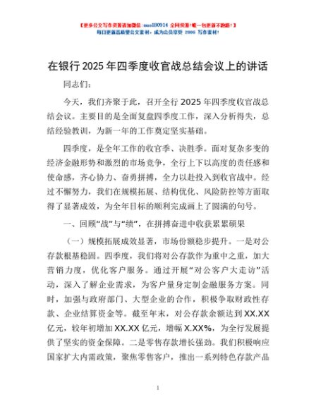/ 在银行2025年四季度收官战总结会议上的讲话