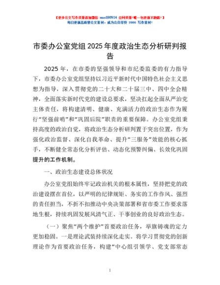 / 市委办公室党组2025年度政治生态分析研判报告