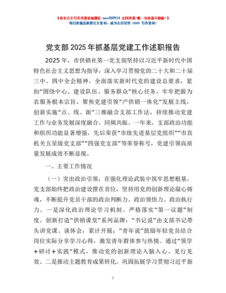 / 党支部2025年抓基层党建工作述职报告