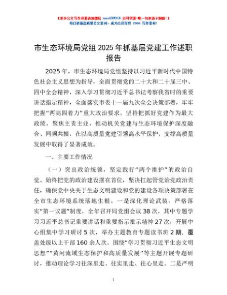 / 市生态环境局党组2025年抓基层党建工作述职报告
