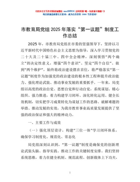 / 市教育局党组2025年落实“第一议题”制度工作总结