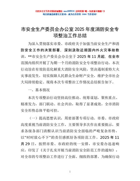 / 市安全生产委员会办公室2025年度消防安全专项整治工作总结