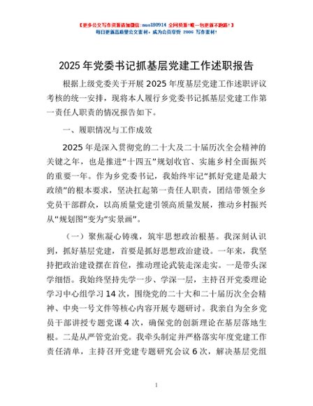 / 2025年党委书记抓基层党建工作述职报告
