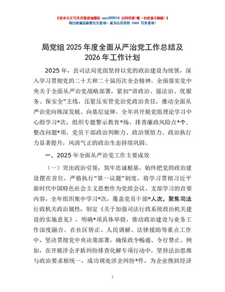 / 局党组2025年度全面从严治党工作总结及2026年工作计划