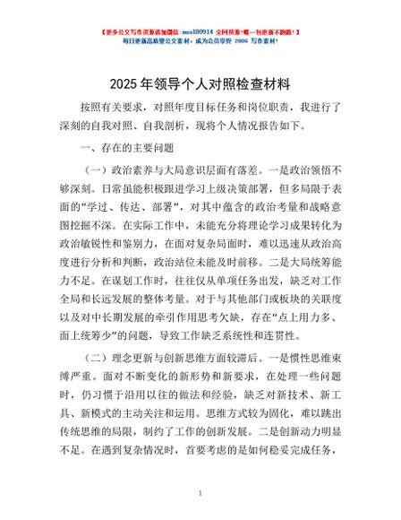 / 2025年领导个人对照检查材料