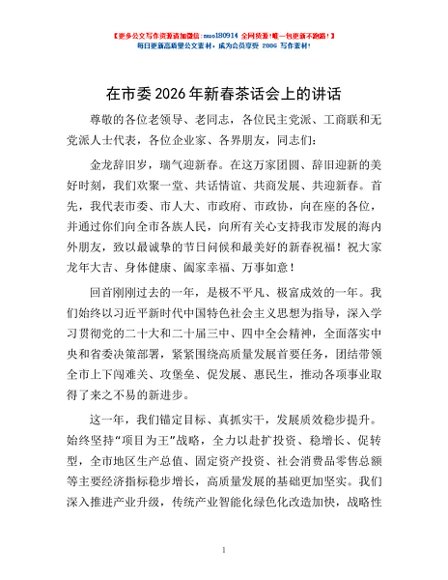 / 在市委2026年新春茶话会上的讲话