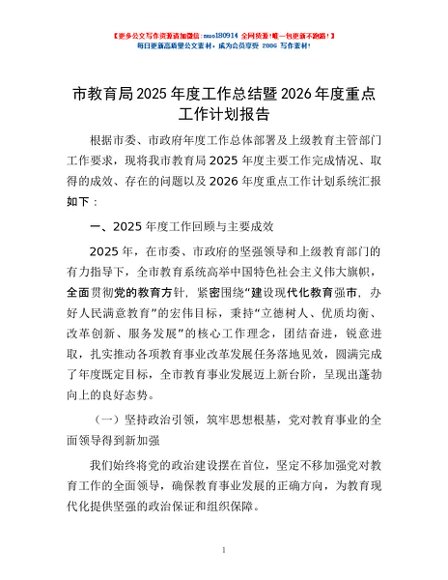 / 市教育局2025年度工作总结暨2026年度重点工作计划报告