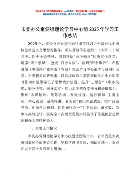 / 市委办公室党组理论学习中心组2025年学习工作总结