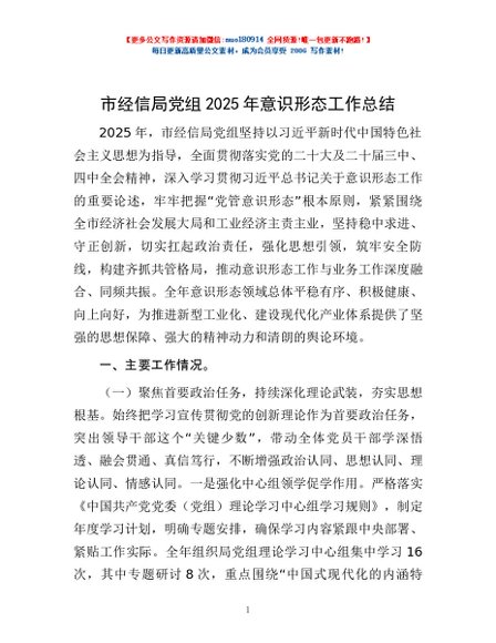 / 市经信局党组2025年意识形态工作总结