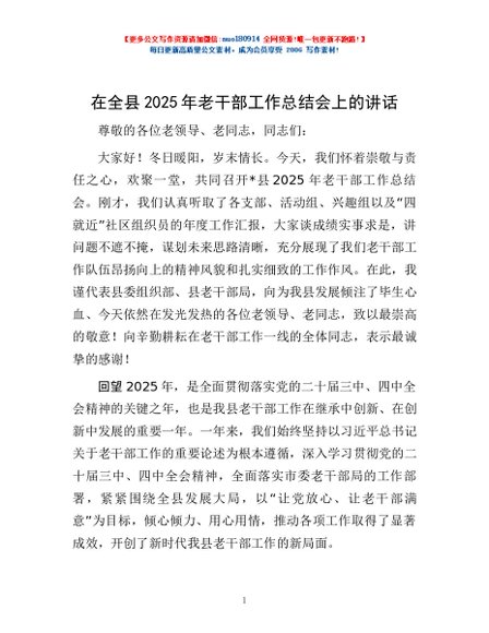 / 在全县2025年老干部工作总结会上的讲话