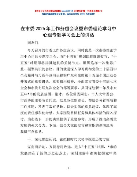 / 在市委2026年工作务虚会议暨市委理论学习中心组专题学习会上的讲话