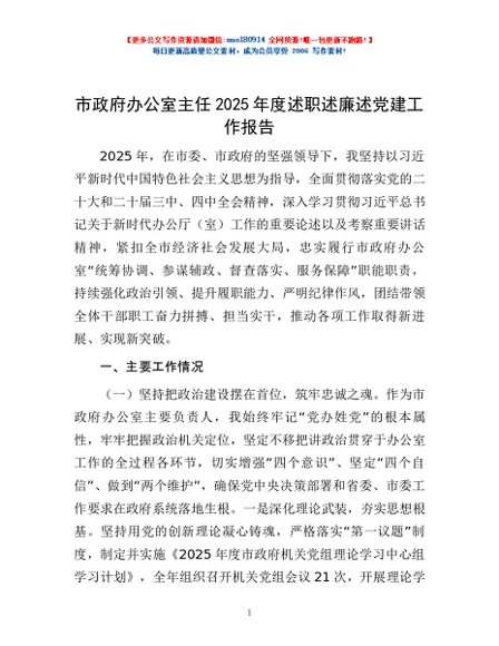 / 市政府办公室主任2025年度述职述廉述党建工作报告