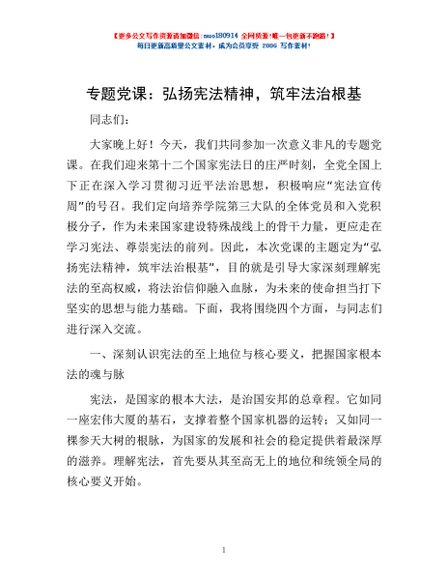/ 专题党课:弘扬宪法精神,筑牢法治根基