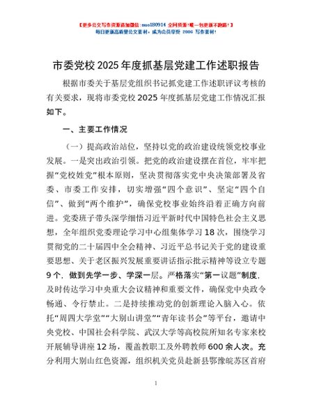 / 市委党校2025年度抓基层党建工作述职报告