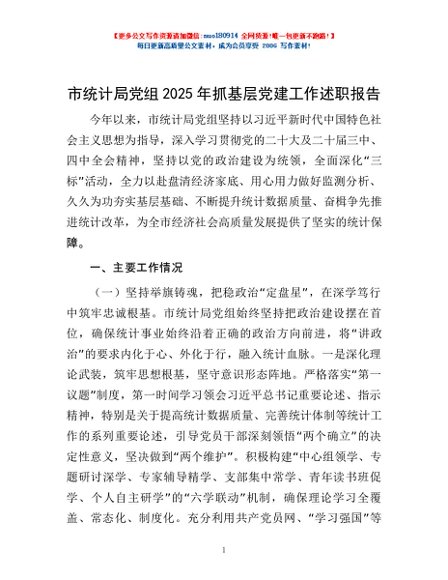 / 市统计局党组2025年抓基层党建工作述职报告