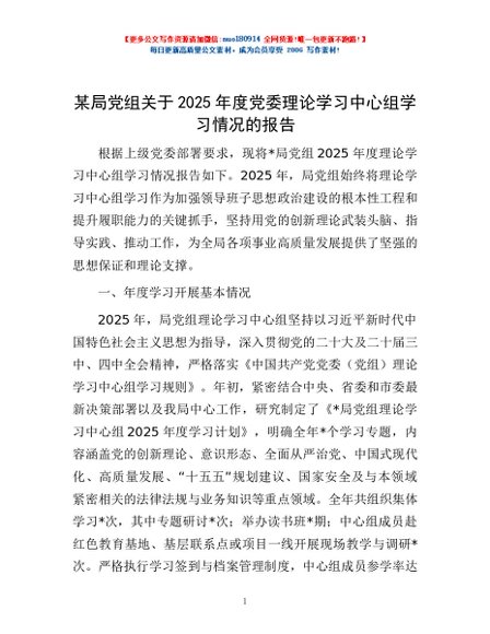 / 某局党组关于2025年度党委理论学习中心组学习情况的报告