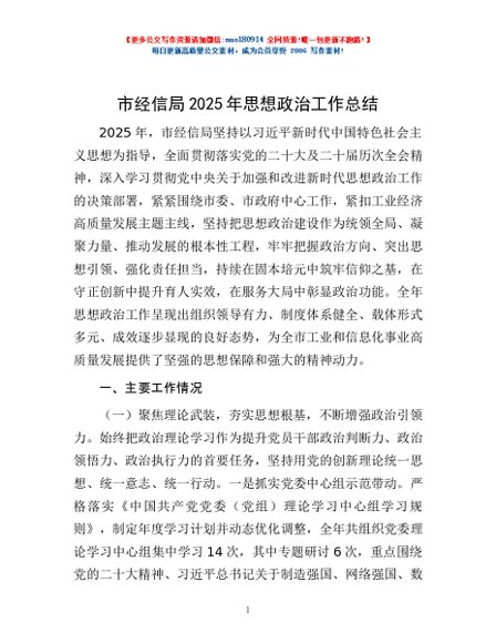 / 市经信局2025年思想政治工作总结