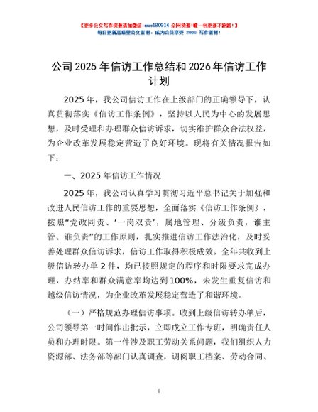 / 公司2025年信访工作总结和2026年信访工作计划