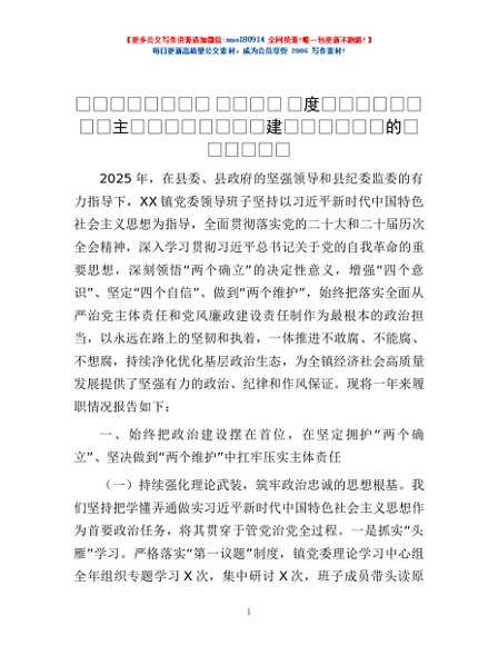 / 乡镇党委领导班子2025年度落实全面从严治党主体责任和党风廉政建设责任制情况的述责述廉报告