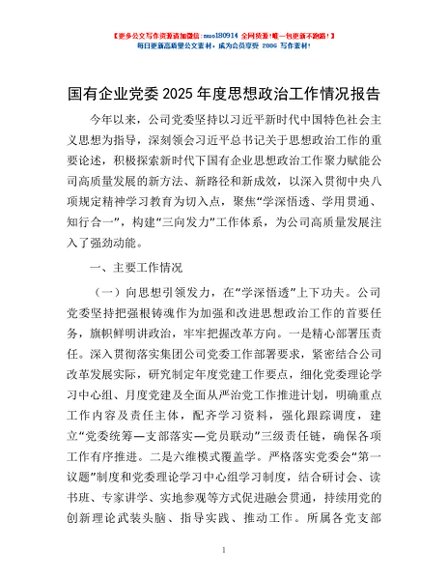 / 国有企业党委2025年度思想政治工作情况报告