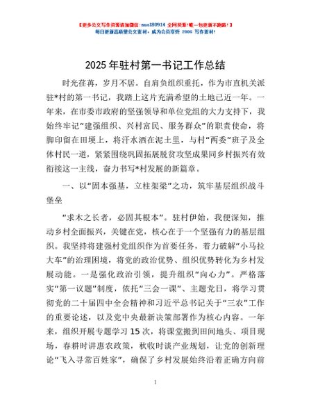 / 2025年驻村第一书记工作总结