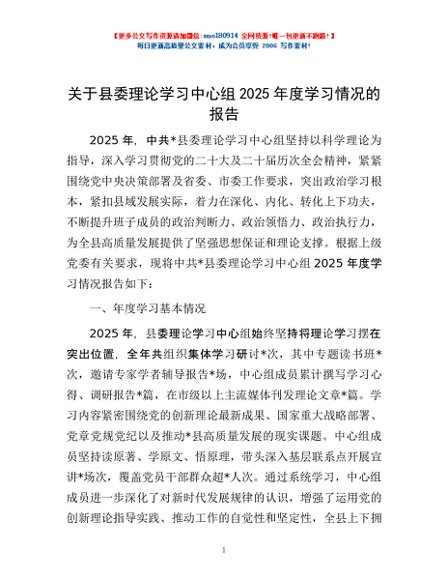 / 关于县委理论学习中心组2025年度学习情况的报告