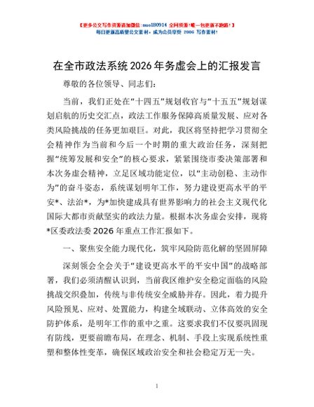 / 在全市政法系统2026年务虚会上的汇报发言