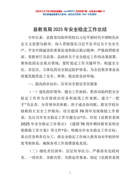 / 县教育局2025年安全稳定工作总结