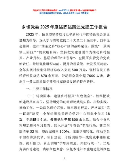 / 乡镇党委2025年度述职述廉述党建工作报告