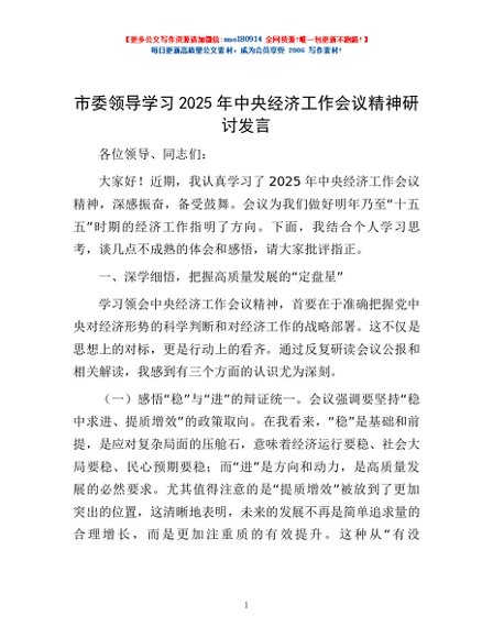 / 市委领导学习2025年中央经济工作会议精神研讨发言