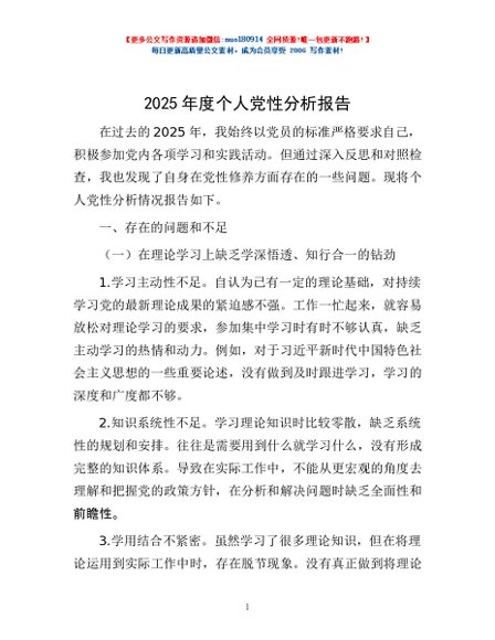 / 2025年度个人党性分析报告