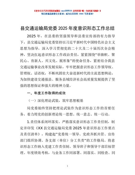 / 县交通运输局党委2025年度意识形态工作总结