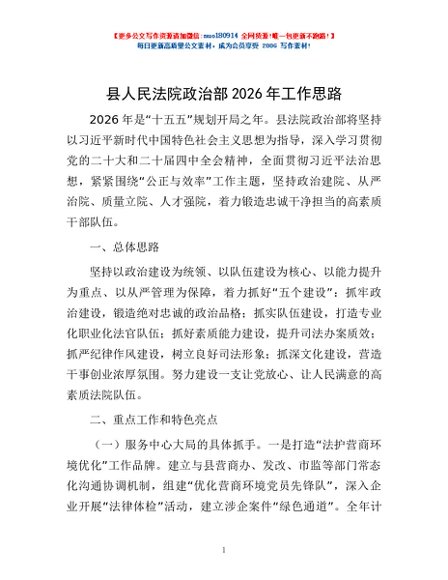 / 县人民法院政治部2026年工作思路