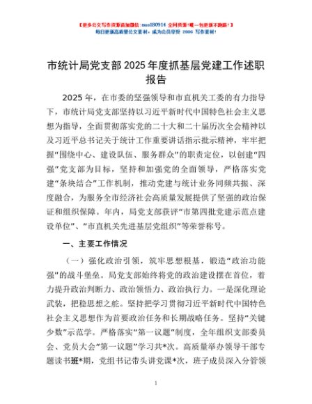 / 市统计局党支部2025年度抓基层党建工作述职报告