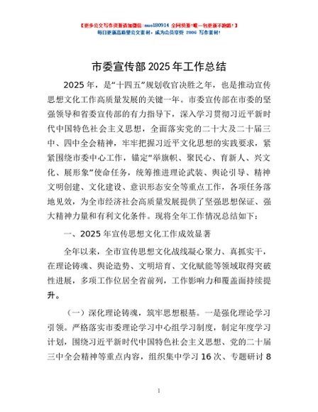 / 市委宣传部2025年工作总结