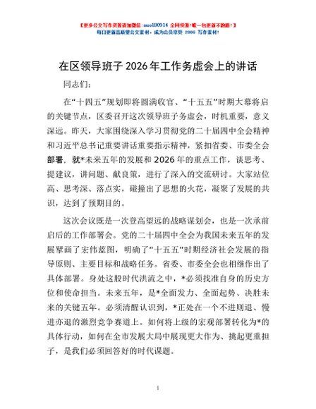 / 在区领导班子2026年工作务虚会上的讲话