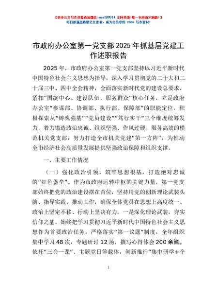 / 市政府办公室第一党支部2025年抓基层党建工作述职报告