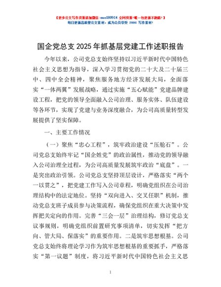 / 国企党总支2025年抓基层党建工作述职报告