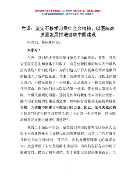 / 党课:坚定不移学习贯彻全会精神,以医院高质量发展推进健康中国建设