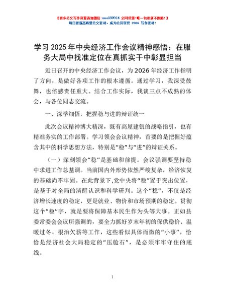 / 学习2025年中央经济工作会议精神感悟:在服务大局中找准定位在真抓实干中彰显担当