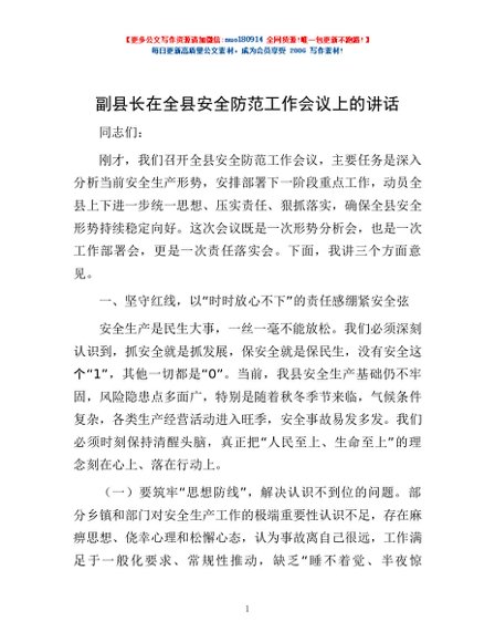 / 副县长在全县安全防范工作会议上的讲话