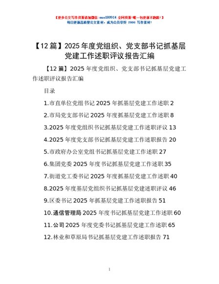 / 【12篇】2025年度党组织、党支部书记抓基层党建工作述职评议报告汇编