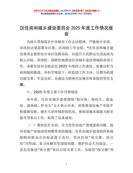 / 区住房和城乡建设委员会2025年度工作情况报告