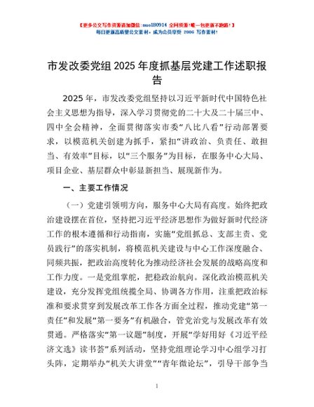 / 市发改委党组2025年度抓基层党建工作述职报告