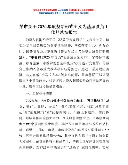 / 某市关于2025年度整治形式主义为基层减负工作的总结报告