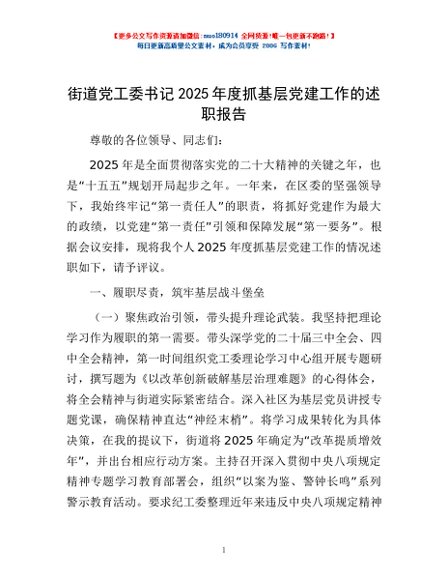 / 街道党工委书记2025年度抓基层党建工作的述职报告