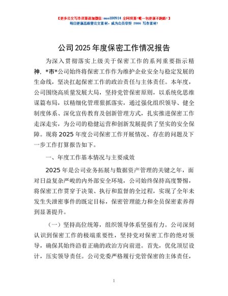 / 公司2025年度保密工作情况报告