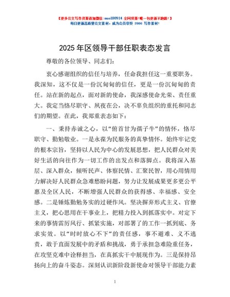 / 2025年区领导干部任职表态发言