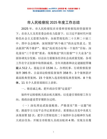 / 市人民检察院2025年度工作总结